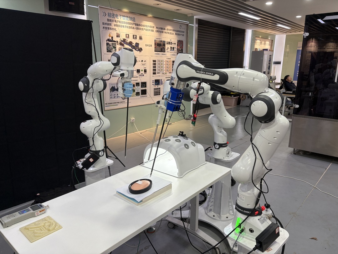 11月2日,湖南大学机械人视觉取节制手艺国度工程研究核心内,立异高潮涌动,了深秋的凉意。走进一楼展厅,沿着陈列的展板向前,三台白色机械臂正正在模仿手术台前精准功课。取此同时,几位学生就坐正在展区电脑前及时调试代码。