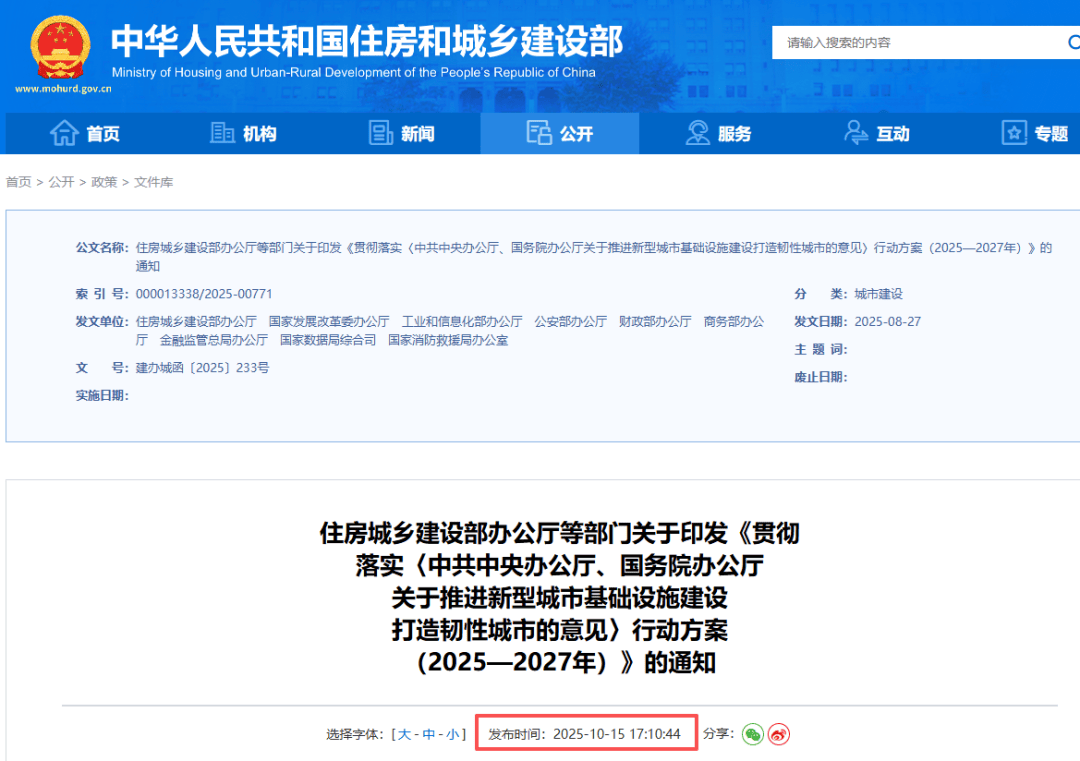各省、自治区、曲辖市及新疆出产扶植兵团住房城乡扶植厅(委、管委、局)、成长委、工业和消息化从管部分、(局)、财务厅(局)、商务从管部分、数据办理部分,各省、自治区、曲辖市消防救援总队,各相关单元:为深切贯彻落实《地方办公厅、国务院办公厅关于推进新型城市根本设备扶植打制韧性城市的看法》,住房城乡扶植部会同相关部分制定了《贯彻落实〈地方办公厅、国务院办公厅关于推进新型城市根本设备扶植打制韧性城市的看法〉步履方案(2025—2027年)》,现印发给你们,请连系现实抓好贯彻落实。